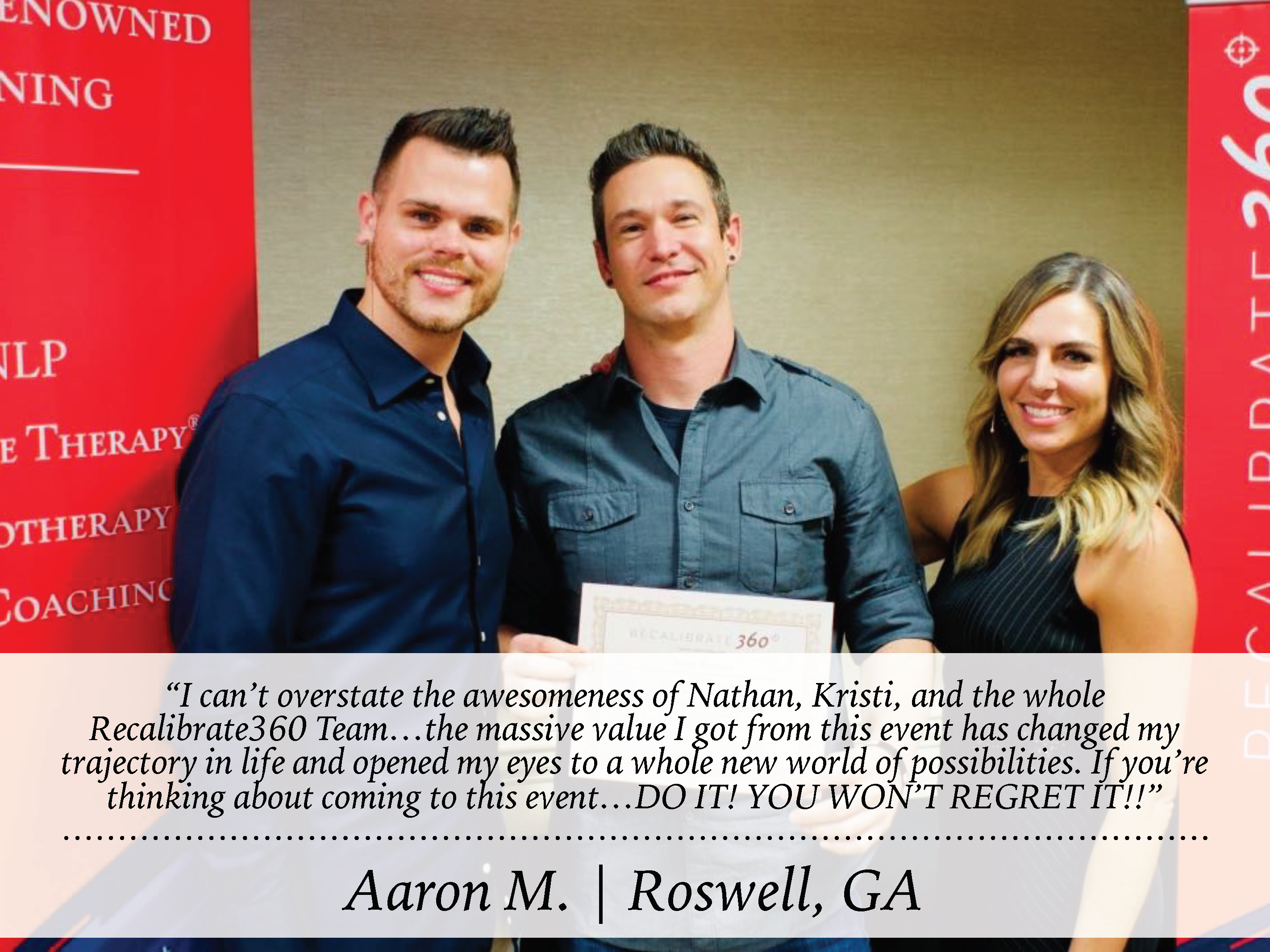 “I’ve been in the personal development and training industry for over a decade…as a student and also a Trainer…I’ve never seen a company give more content and value as Recalibrate360 does at their trainings…it’s ridiculous! This event changed the course of my life and my business."