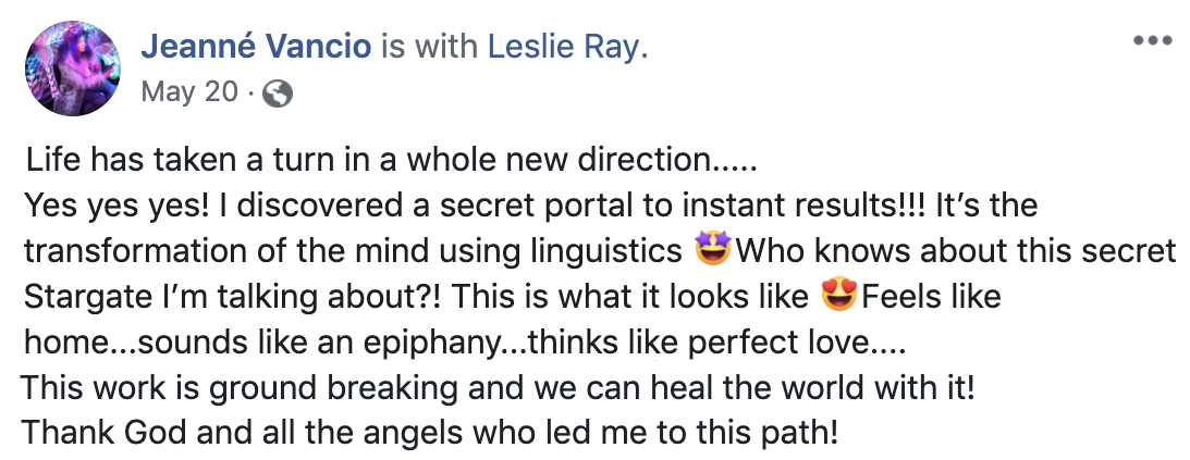 "NLP brings it all together! I feel perfect, whole, and complete "